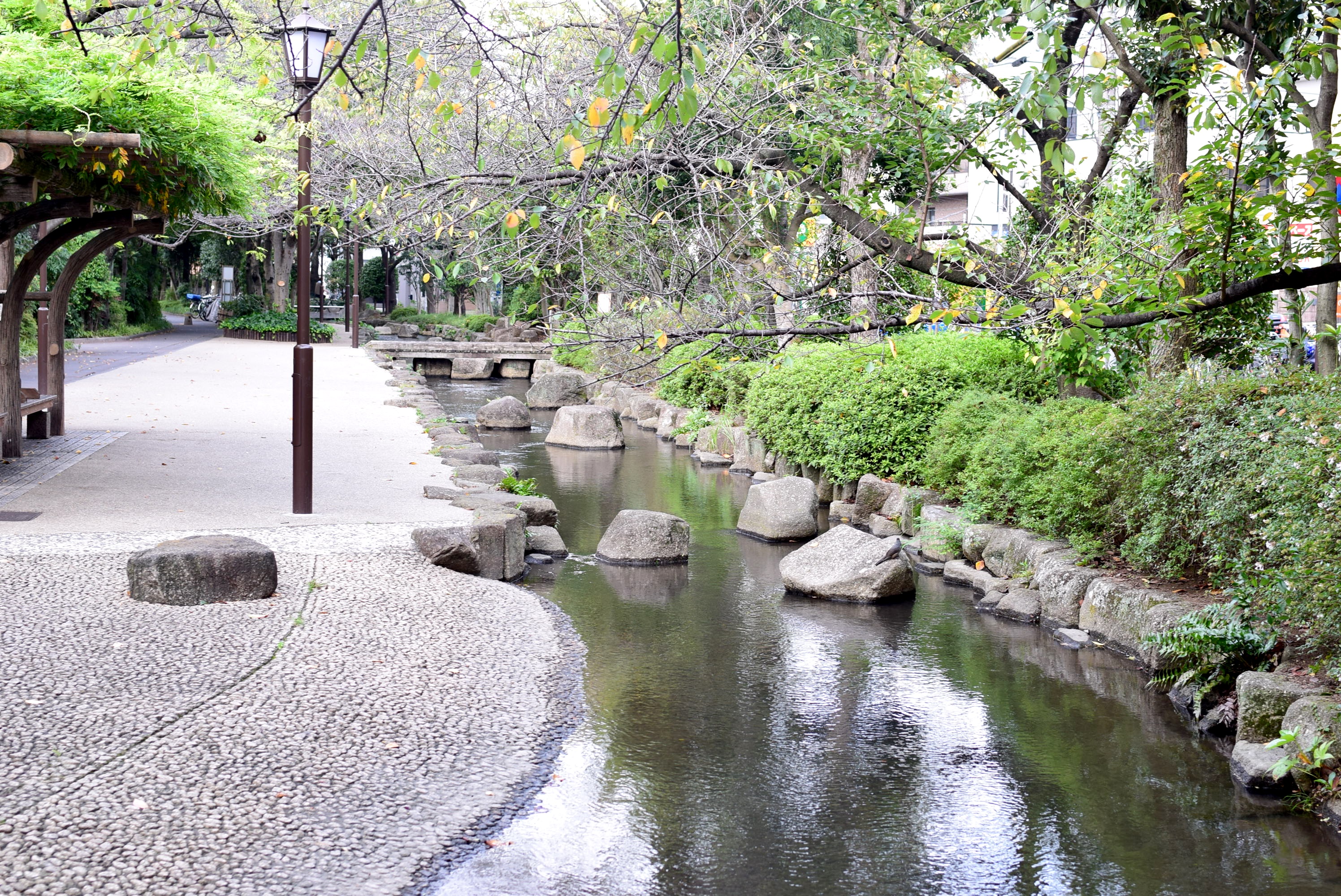 工場のすぐそばには小松川境川親水公園があります。全長3,930mの水辺は天気の良い日のお昼ご飯にピッタリ。緑豊かな環境です。