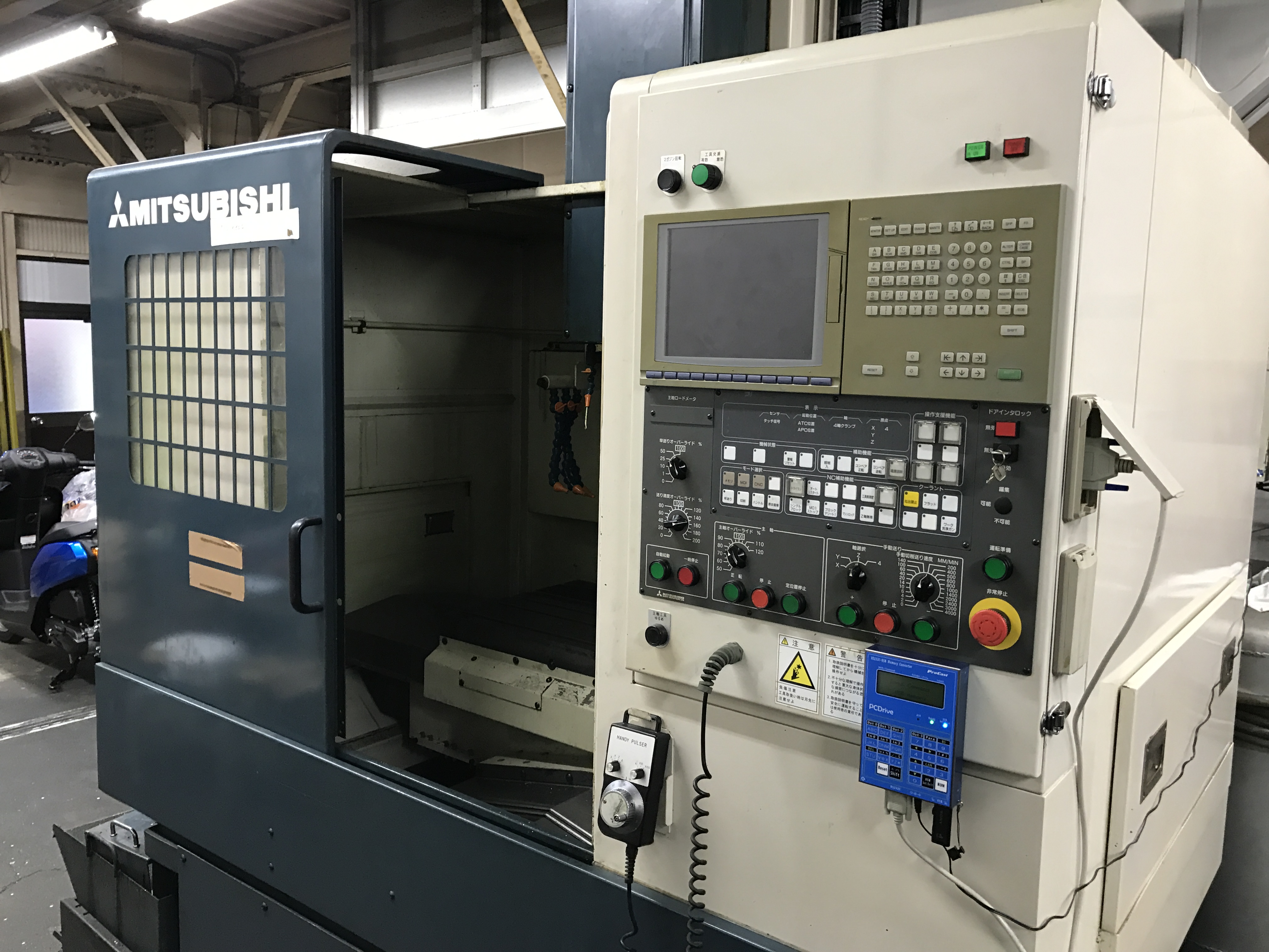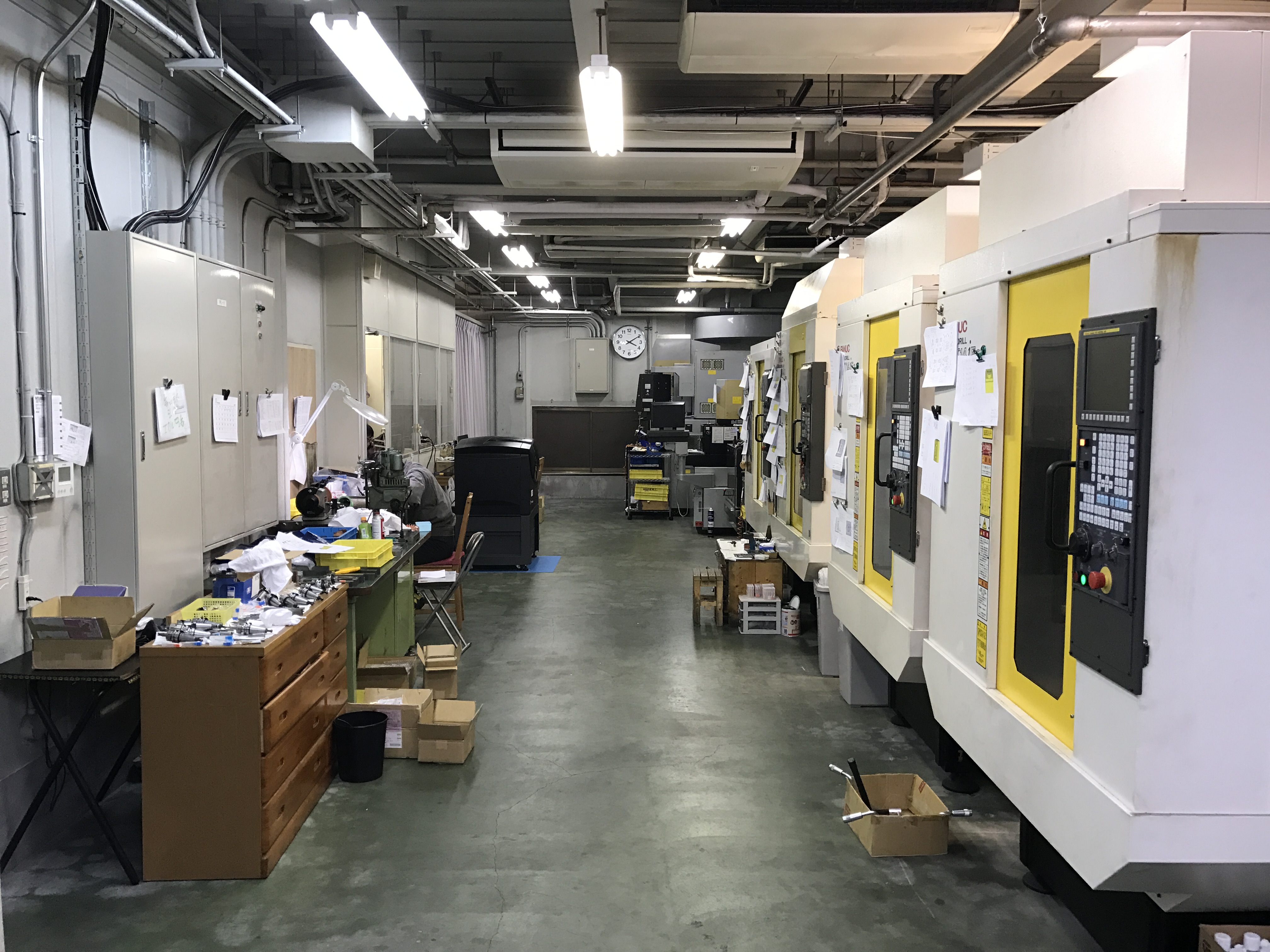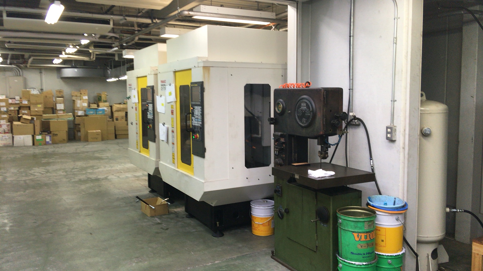 これが昨年10月ごろの松島工場の写真。まだガランとして、荷物も片付いていない状態。このころはマシニングセンタ2台を仮置きして稼動していました。