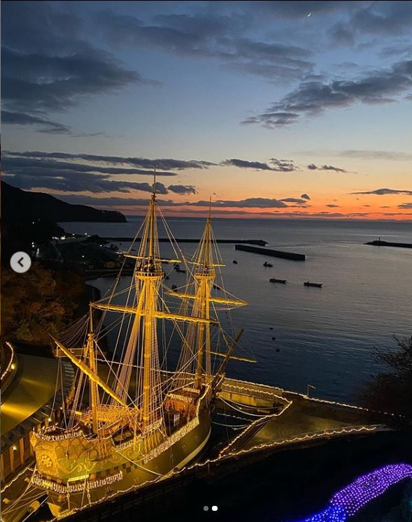 石巻の冬の風物詩であるサン・ファン・バウティスタ復元船のイルミネーションを見ることができました。約1万個の電球でライトアップされています。