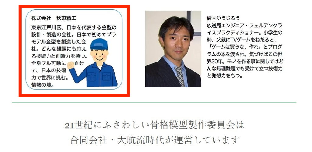 そこで体幹部が動く骨格モデルを作るプロジェクトが立ち上がり、プロジェクトの趣旨に賛同した整体師、理学療法士、作業療法士等の各分野を代表する指導者の協力により、医療分野の方でも満足できるような骨格モデルづくりが始まりました。