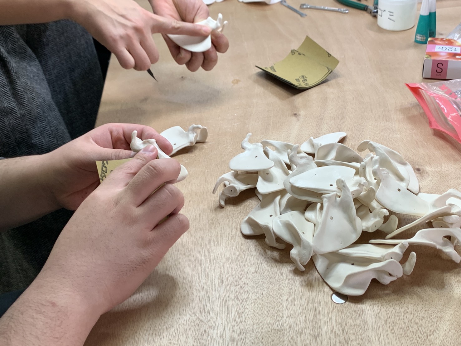 白一色のジグソーパズルのように、部品同士は必ずぴったりフィットするのがおもしろいところ。骨の形を忠実に再現すると、人体の構造がわからなくてもパズルの要領で配置位置の正解がわかります。