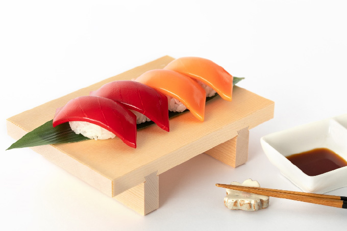 寿司はお好きですか?まぐろにサーモン、つやつやした身が美味しそうですよね。実は、こちら秋東精工の新作プラモデル。「寿司プラモ 貴方にこれが握れるか!?」なんです。
